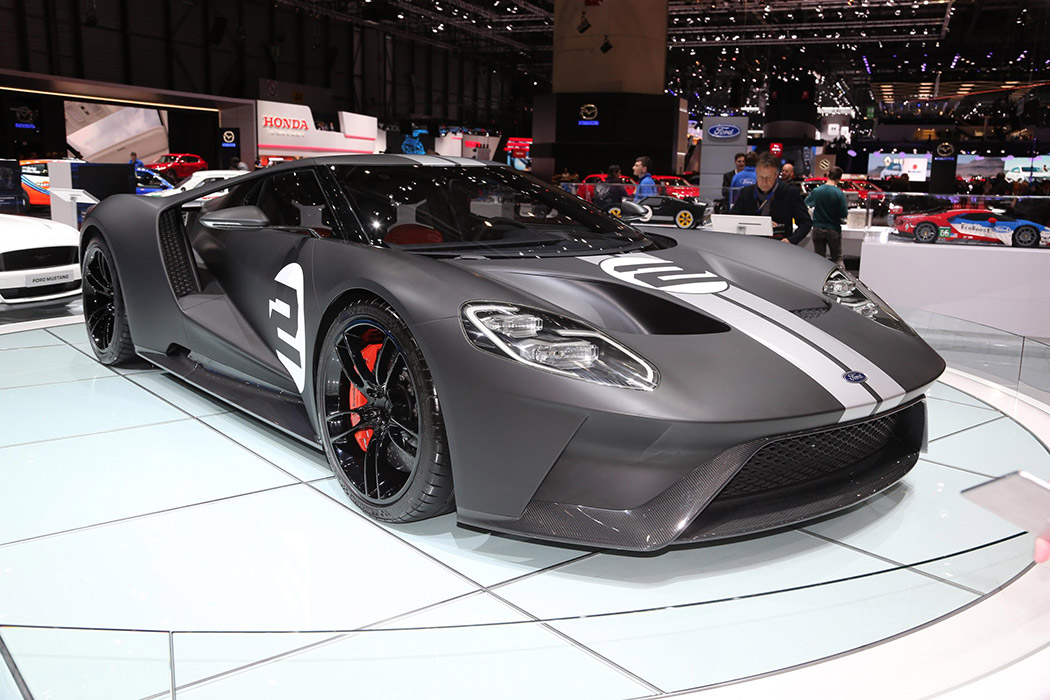 Το Ford GT δίνει το παρών στη Γενεύη στα χρώματα της έκδοσης περιορισμένης παραγωγής Ford GT ’66 Heritage Edition. Το μοντέλο τιμά τη νίκη της Ford στο Le Mans του 1966, υιοθετώντας εξωτερική απόχρωση Shadow Black σε gloss ή matte φινίρισμα με ασημί ρίγες και ανθρακονήματα, καπό και γραφικά θυρών σε Frozen White #2 και σφυρήλατες χρυσαφί ζάντες 20-ιντσών.